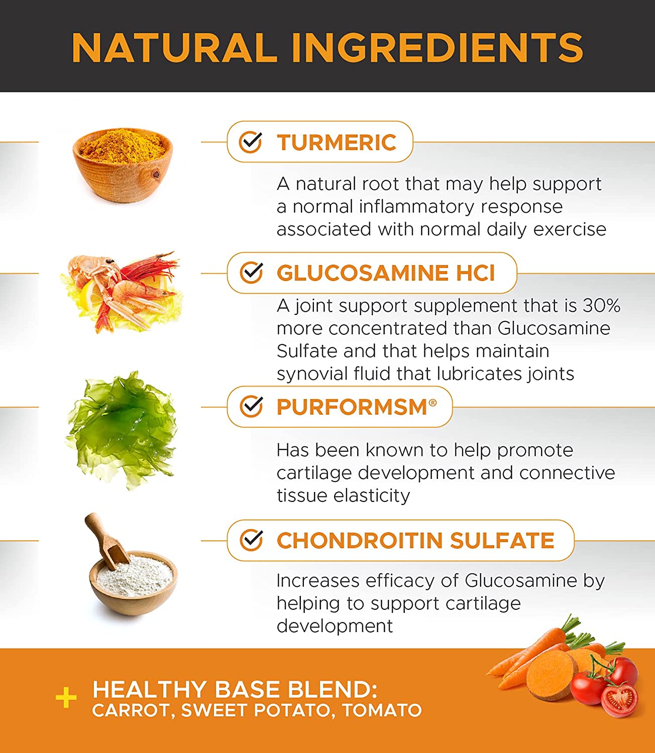 Ease Joint Stiffness Associated With Daily Activity + Normal Inflammatory Response – PetHonesty’s Advanced Hip + Joint soft chews combine Glucosamine, MSM and other powerful all-natural ingredients like Turmeric to help support your dog’s mobility, joint health and ease joint stiffness.