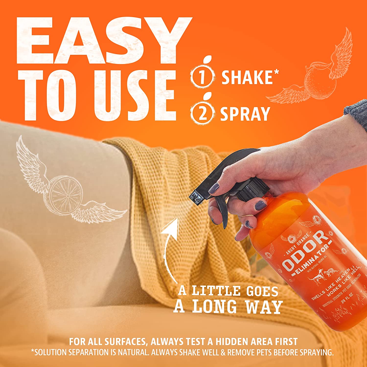 Powerful – A little goes a long way with the Angry Orange pet odor eliminator for home use. It’s a carpet deodorizer that targets strong, lingering smells at the source and destroys them.
