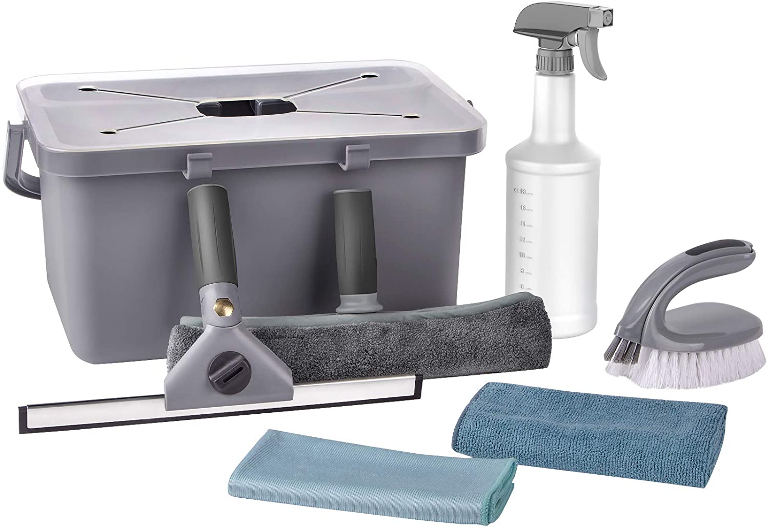 Consisted of sturdy rectangular caddy, durable ABS transparent cover and easy toting, perfect for storing cleaning products and supplies. Detachable rack inside the caddy is designed for storing microfiber window scrubber particularly, while the outside hooks are for hanging window squeegee. Holds up to 15 L water to assist your daily household cleaning. 12 inch microfiber window scrubber attracts fine dust and absorbs water easily, it’s detachable and machine washable. Flexible yet durable 12 inch silicone window squeegee easily removes soap scum, water drops and limescale but leaves no streaks. Stainless steel clip and durable silicone blade ensure much longer lifespan than rubber squeegee. 2 in 1 multi-purpose scrub brush includes a scrub brush and a small angled grout brush snapped in the handle. Durable PP bristle is great for cleaning bathroom, kitchen, tiles, garage, they are firm enough to stand up after sustained use. The small angled brush can be taken out easily for separate use, which is ideal for cleaning narrow spaces and crevices. Thick absorbent frost teal microfiber cloth captures dust, dirt and grime like a magnet, it soaks up water from countertop and tables quickly without lint or streaks left behind, can be widely used for worktops, appliances to kitchens, bathrooms; And another ultra fine sand green microfiber cloth ensures excellent performance especially in cleaning glass, window, mirror, lens, stemwares and leaves no streaks or lint on surfaces. Adjustable nozzle of spray bottle can be switched easily from mist, stream or to off with just a simple turn. There are measurements on the bottle which make it easier to see how much contents remain inside. MR.SIGA’s mission: Make your housework easier, and make the world cleaner. If you’re not happy about the product, you’re covered by a full refund. Please do not hesitate to contact us with any questions you may have, we are here for support and advice!